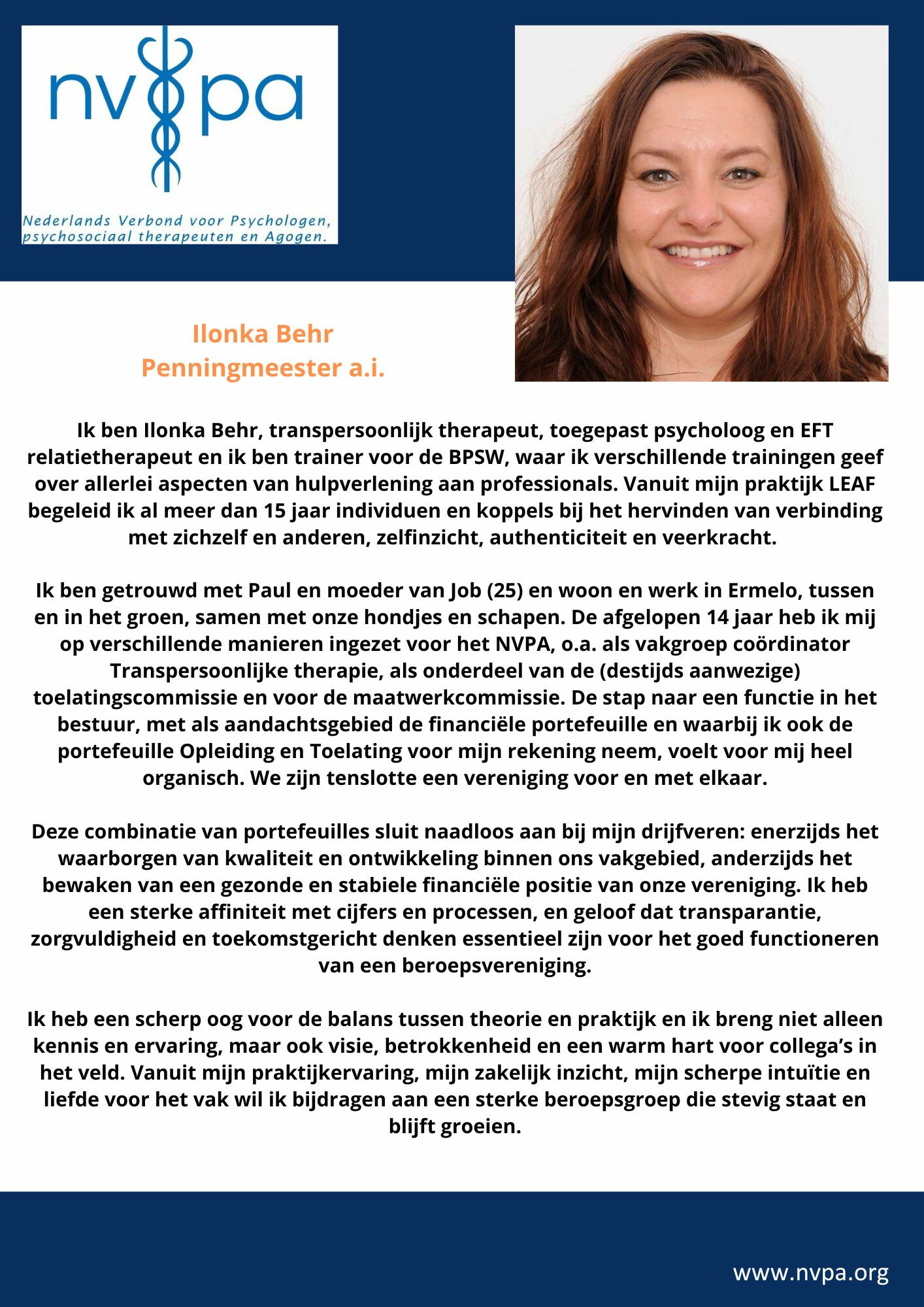 Mevr. Ilonka Behr | Penningmeester a.i. | Financiën |